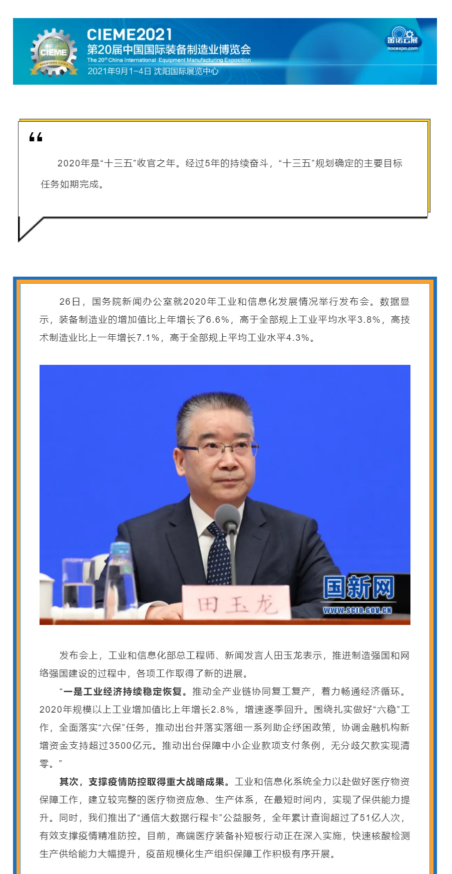 國務(wù)院發(fā)布會(huì):2020裝備制造業(yè)增加值同比增6.6