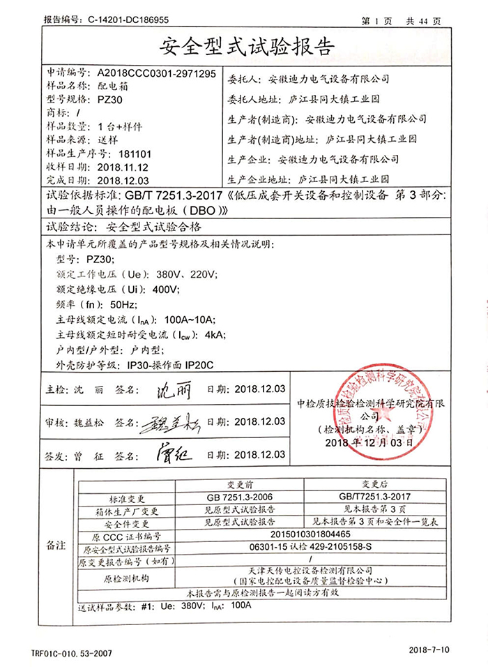 PZ30 配電箱 3C 及檢驗(yàn)報(bào)告