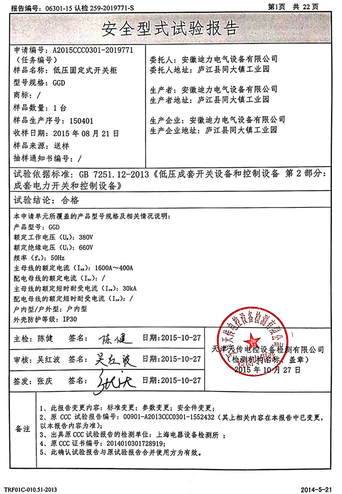 GGD 固定式開關(guān)柜 3C 及檢驗(yàn)報(bào)告